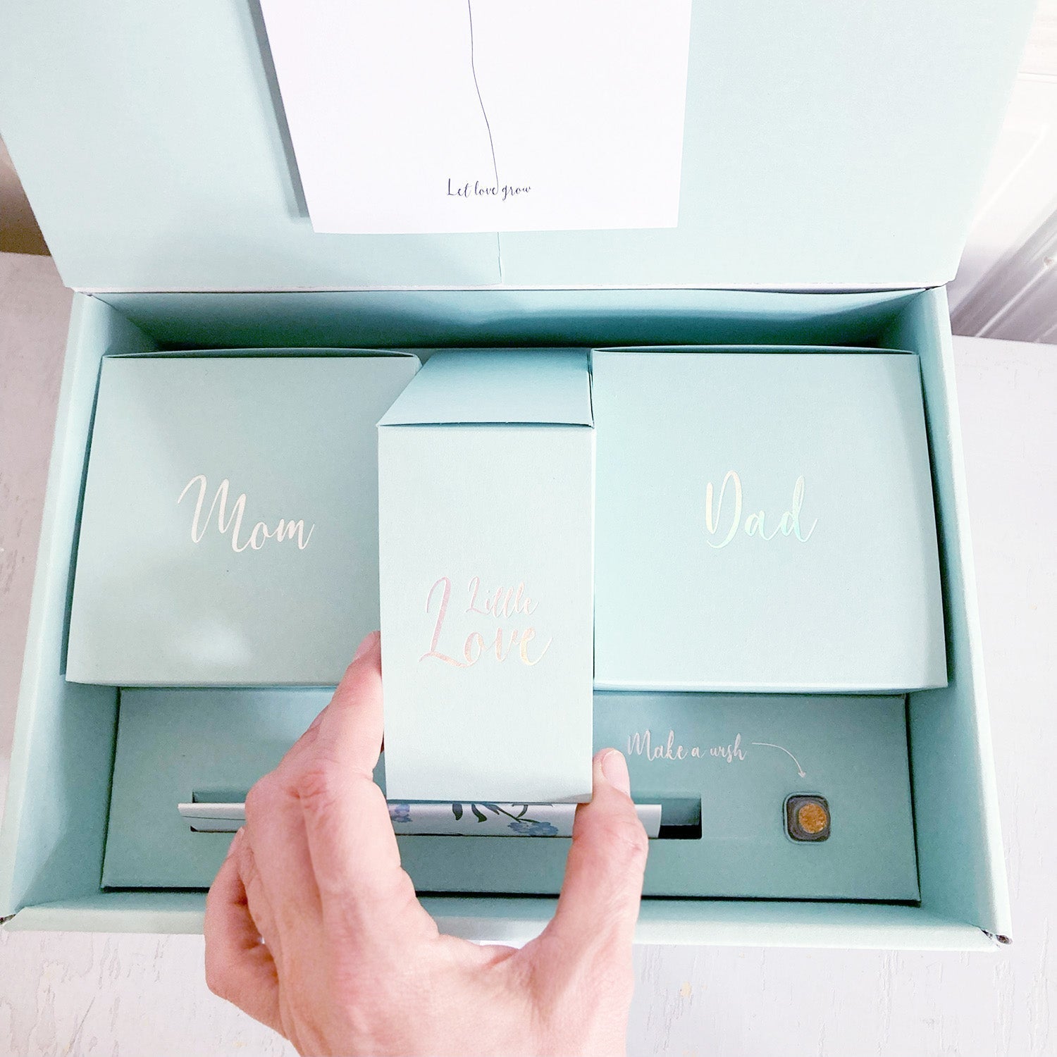 Die "We Are Family" Geschenkbox ist ein hochwertiges Geburtsgeschenk für Familien mit Neugeborenen – emotional, praktisch und voller liebevoller Details. Die edle Box mit Satinschleife und Goldprägung bietet Händlern ein verkaufsstarkes Produkt für alle, die zur Geburt ein besonderes, familienorientiertes Geschenk suchen.