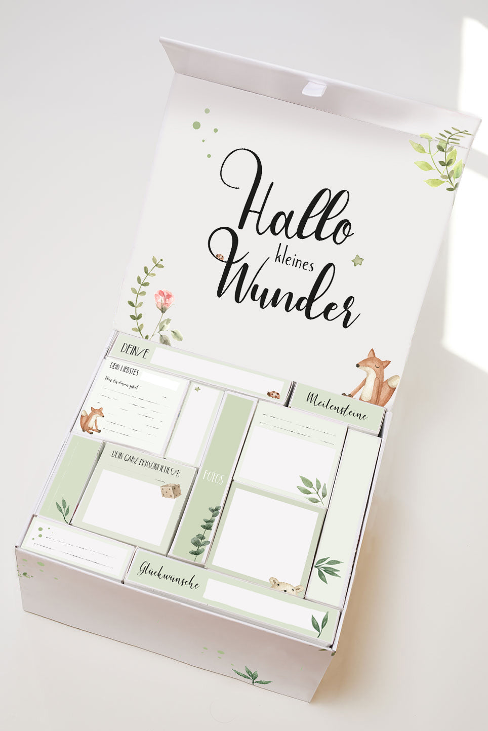 Der Baby-Countdown-Kalender ist ein hochwertiges Geschenkset, das frischgebackene Eltern durch das erste Jahr mit ihrem Baby begleitet – Monat für Monat, mit abgestimmten Geschenken und bleibenden Erinnerungen. Ein emotionaler Begleiter mit hohem Nutzwert – ideal für Baby-Shops, Geschenkeläden, Papeterien oder Concept Stores mit Fokus auf junge Familien.
